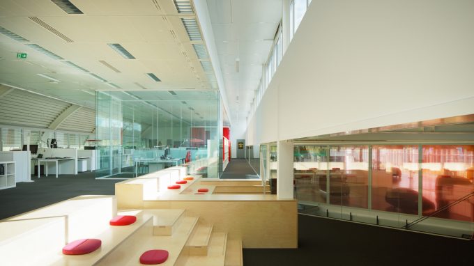 Le site de design a été totalement remanié en m^élant espaces de travail calmes, espaces collaboratifs et espaces de démonstration, dans un soucis de communication, flexibilité tout en développant une trame rigoureuses de locaux en vue d'une optimisation technico-financière du programme. -