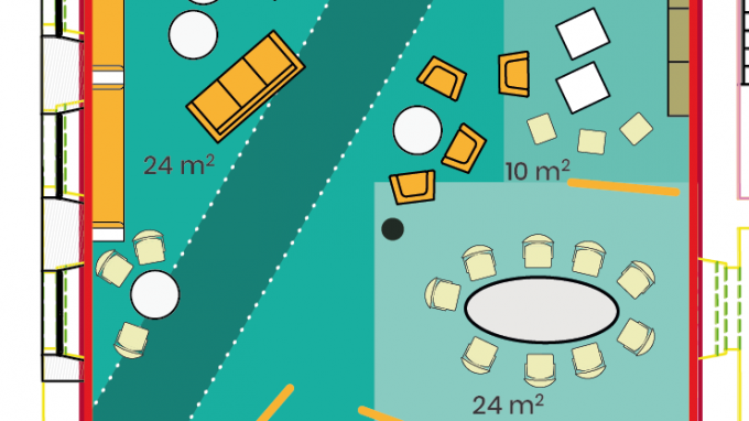 L'aménagement d'un espace collaboratif ouvert doit répondre à des usages parfois différents. Tout en recherchant une grande flexibilité, chaque activité doit trouver un lieu adapté : temps conviviaux, travail en groupe participatif, travail individuel ou en petite équipe au calme, temps de brainstorming... -